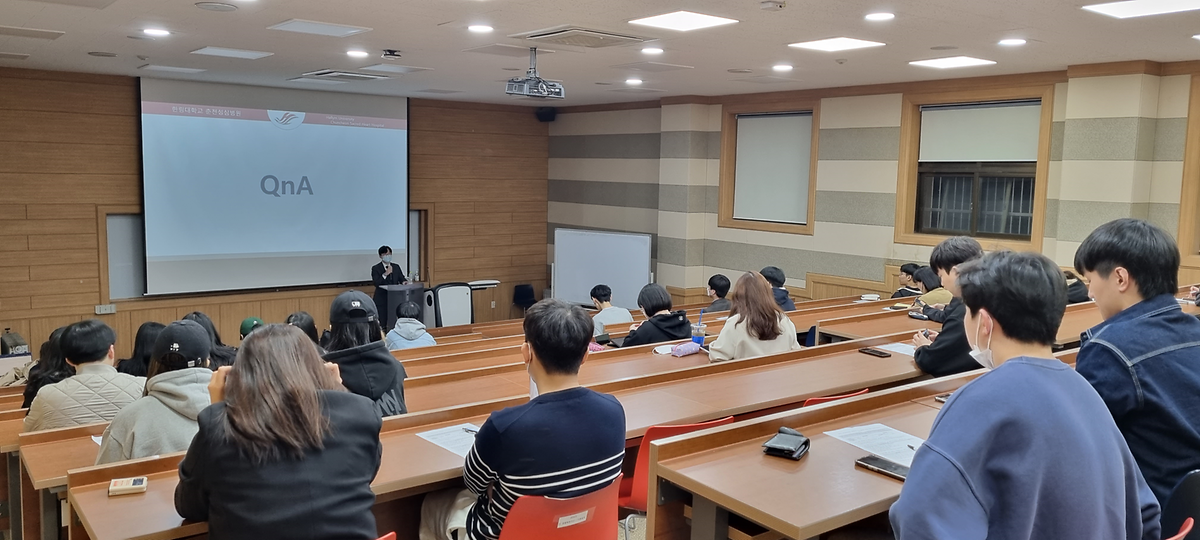 박성균 동문은 대학병원에서의 취업준비 과정을 바탕으로 사기업에 취직을 준비하는 모든 학생이 적용할 수 있는 다양한 전략구사 방법을 설명하였습니다. 또한 한림대학교 춘천성심병원 총무팀 직원들이 함께 동행하여 학생들의 질문을 직접 받아주고 설명해주는 시간도 가졌습니다.