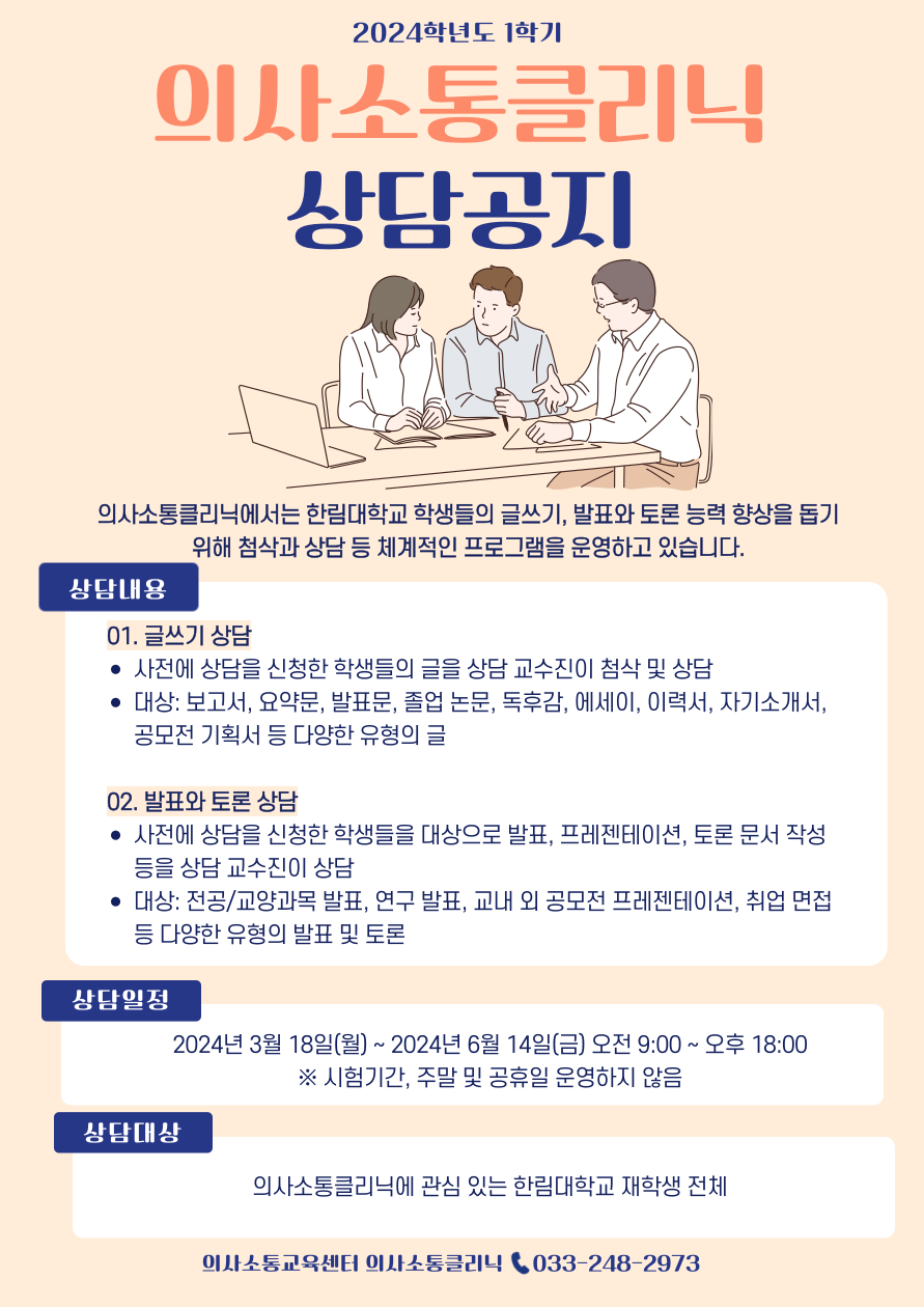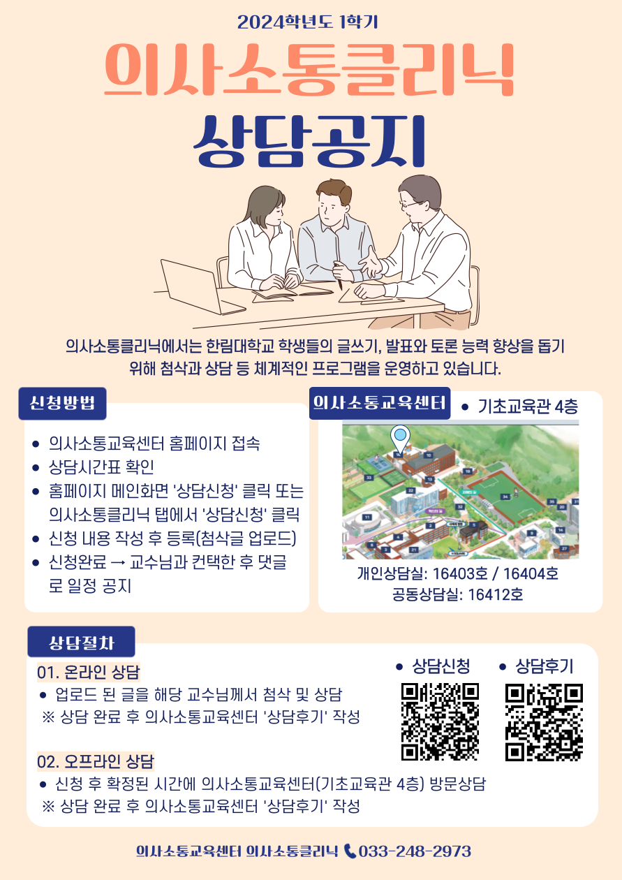 2024-1학기 의사소통클리닉 상담 신청 안내