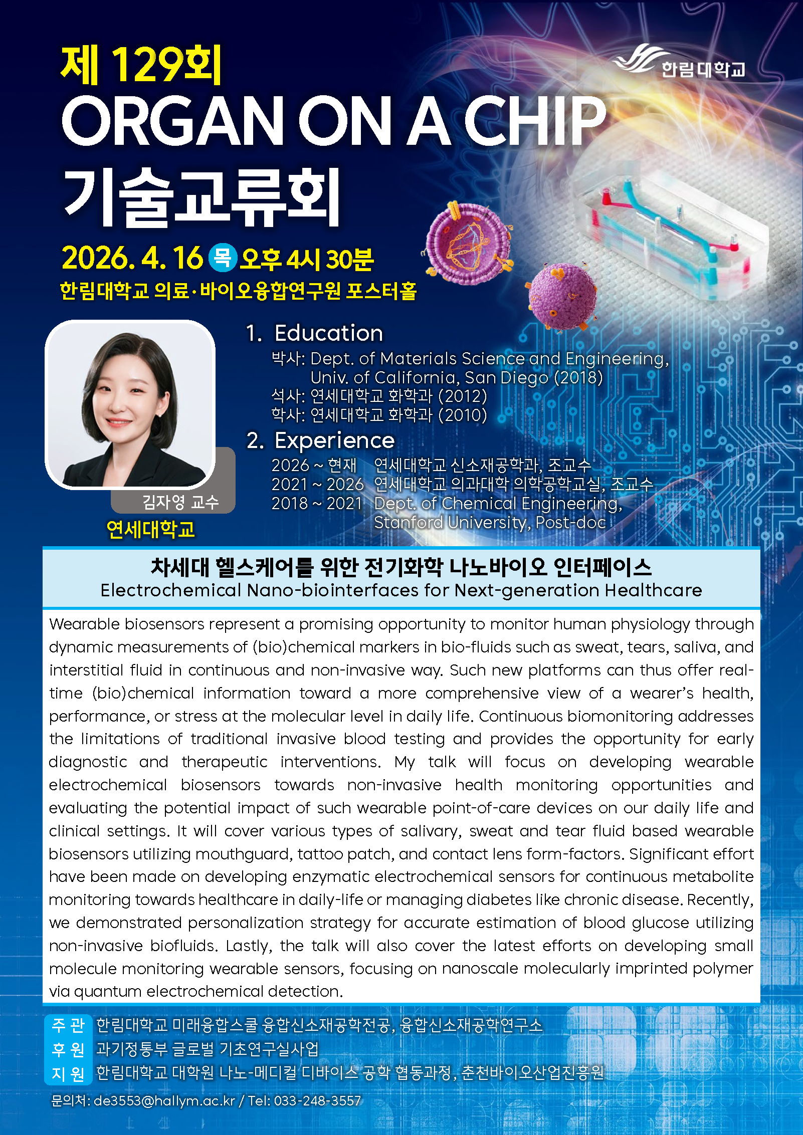 장소: 한림대학교 의료·바이오융합연구원 포스터홀