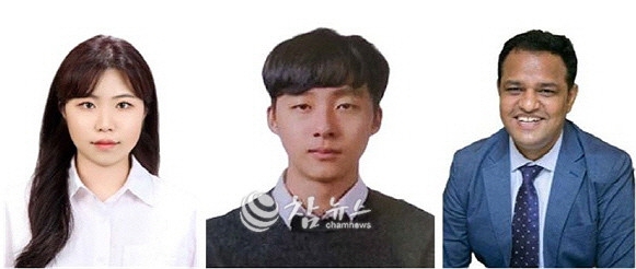 <사진: (좌)박수정 석사과정생, 송인호 석사과정생, 님세 사티쉬 교수>