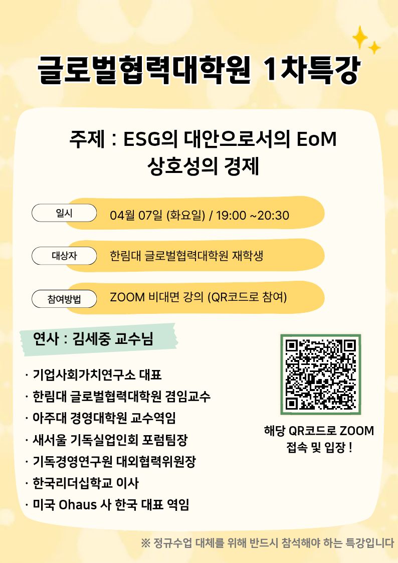 글로벌협력대학원 재학생분들을 대상으로 아래와 같이 특강을 진행하오니