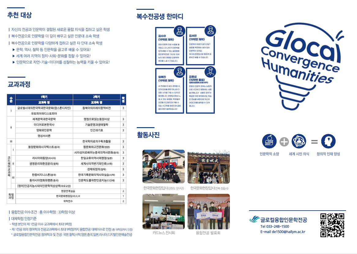 재학생 여러분들께 글로컬융합인문학전공 리플릿을 소개하오니 많은 관심바랍니다.