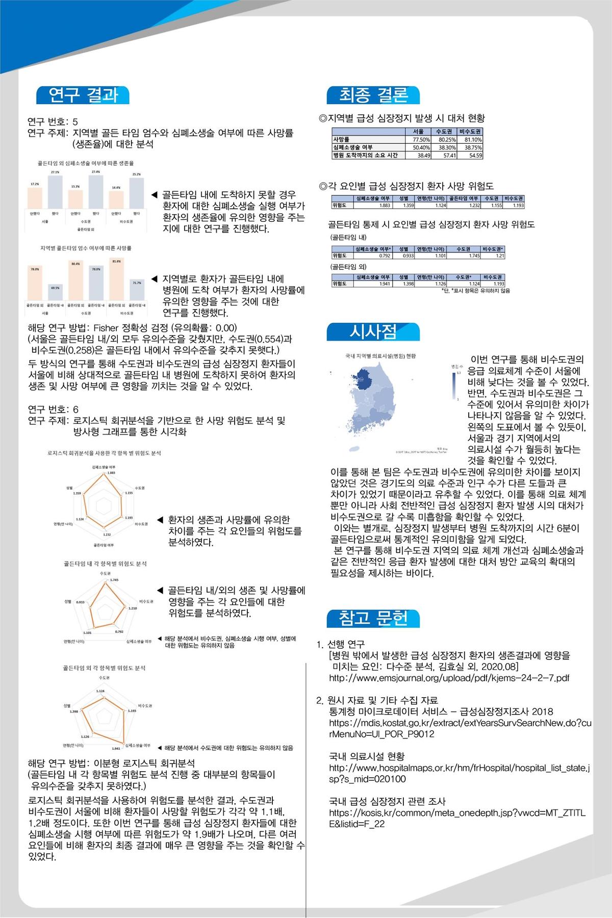 [2020 의과학융합전공 학술제] 국내 지역별 급성심장정지 환자들의 생존 및 사망률에 대한 연구