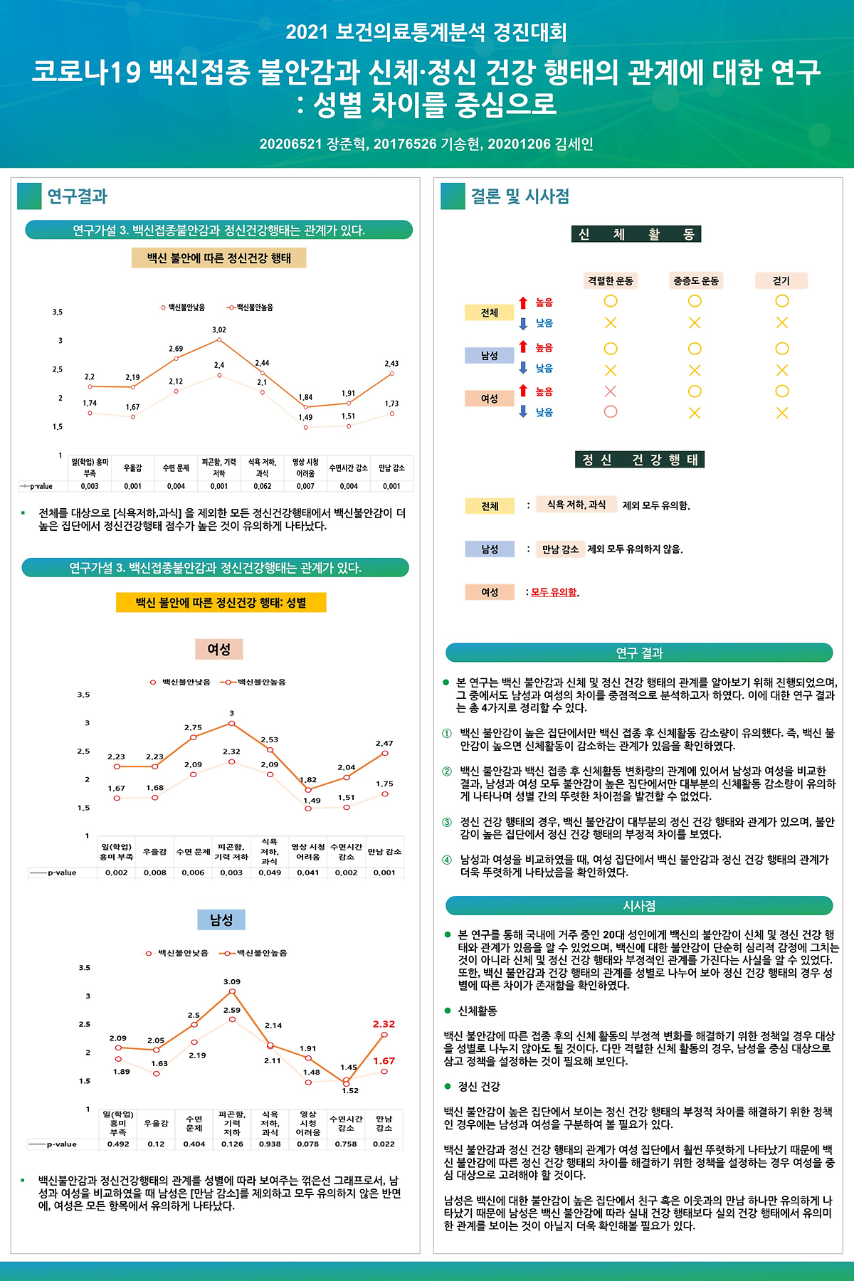 [2021 보건의료통계분석 경진대회] 코로나19 백신 접종 불안감과 신체 및 정신 건강행태의 관계에 대한 연구: 성별 차이를 중심으로