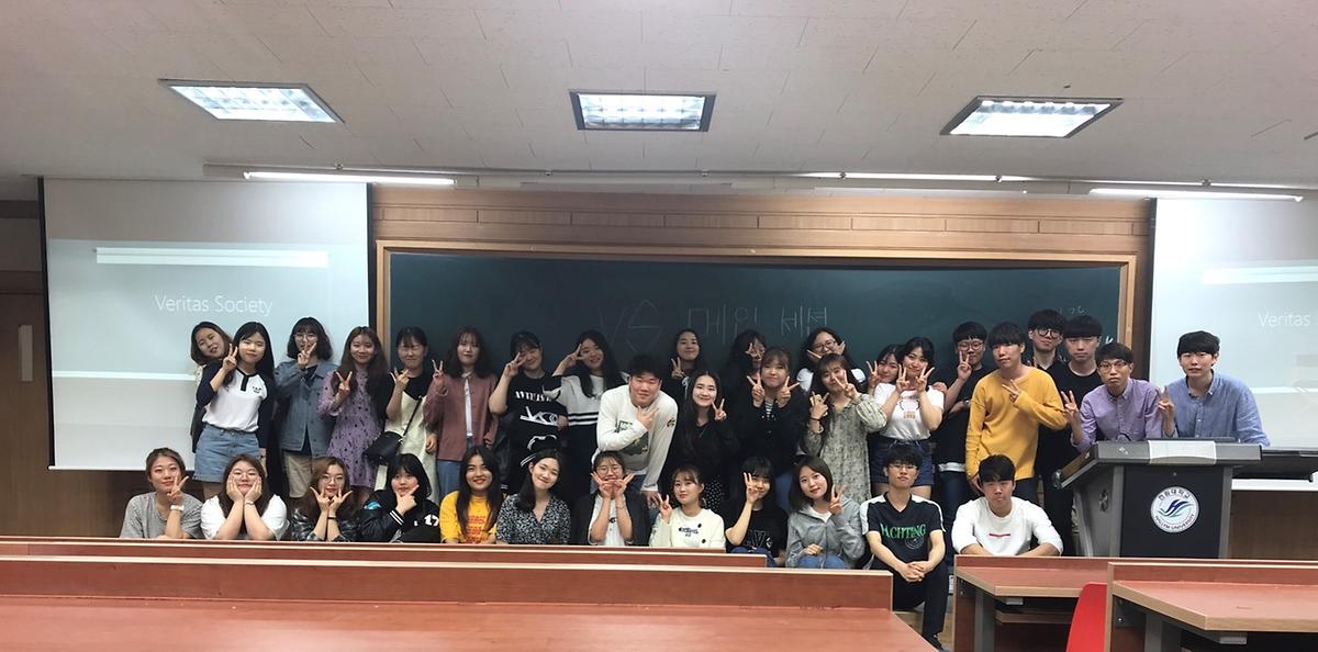 5월 29일 학술동아리 Veritas Society의 1학기 마지막 메인 세션(Main Session)이 개최되었습니다. 메인세션은 Veritas Society의 주요 활동 중 하나로 8개 학회 및 팀들이 돌아가며 각 학회, 팀의 활동을 소개하고, 주제를 정하여 그에 대한 지식 전달 및 토론, 토의 등의 활동을 진행합니다. 경영학, 의과학, IT, 심리학, 자연과학, 사회과학, 인문학, 예술학 등 하나의 분야에 치우치지 않고 다양한 분야를 접하게 됨으로써 학문 간 융합은 물론, 학문에 대한 개인의 비전과 목표를 세우게 됩니다. 더불어 동아리 내 경쟁 PT대회를 개최하고 공모전, 외부 견학 프로그램 등이 운영하는 등 2018년 2학기도 활발한 활동을 예고하고 있습니다.