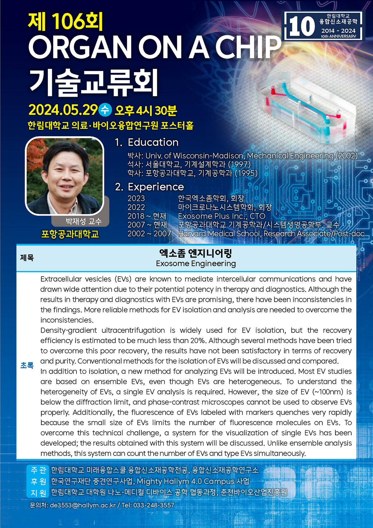 제 106회 Organ on a Chip 기술교류회가 2024년 5월 29일 진행되었다.