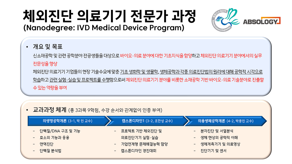 2022-2학기부터 우리 전공에서 신설되는 나노디그리 과정인 체외진단 의료기기 전문가 과정에 대한 안내 드립니다.
