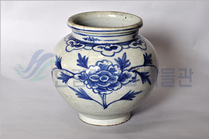 백자 청화 모란무늬 항아리(白磁靑畫牧丹文壺)