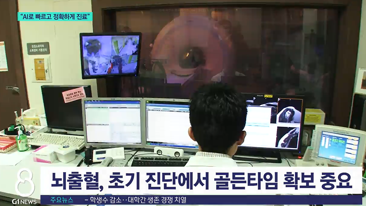 해당 플랫폼이 구축된 병원에선 뇌출혈 환자의 CT 결과물을 인공지능이 탑재된 시스템이 수초 내에 분석할 수 있습니다.