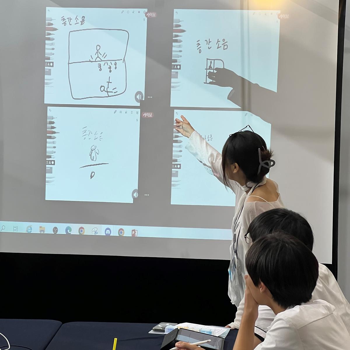 학생들의 통통 튀는 그림들을 다함께 감상하고, 퀴즈 정답자에게는 귀여운 쏘시지가 그려진 뱃지 등 다양한 상품을 선물하였습니다.