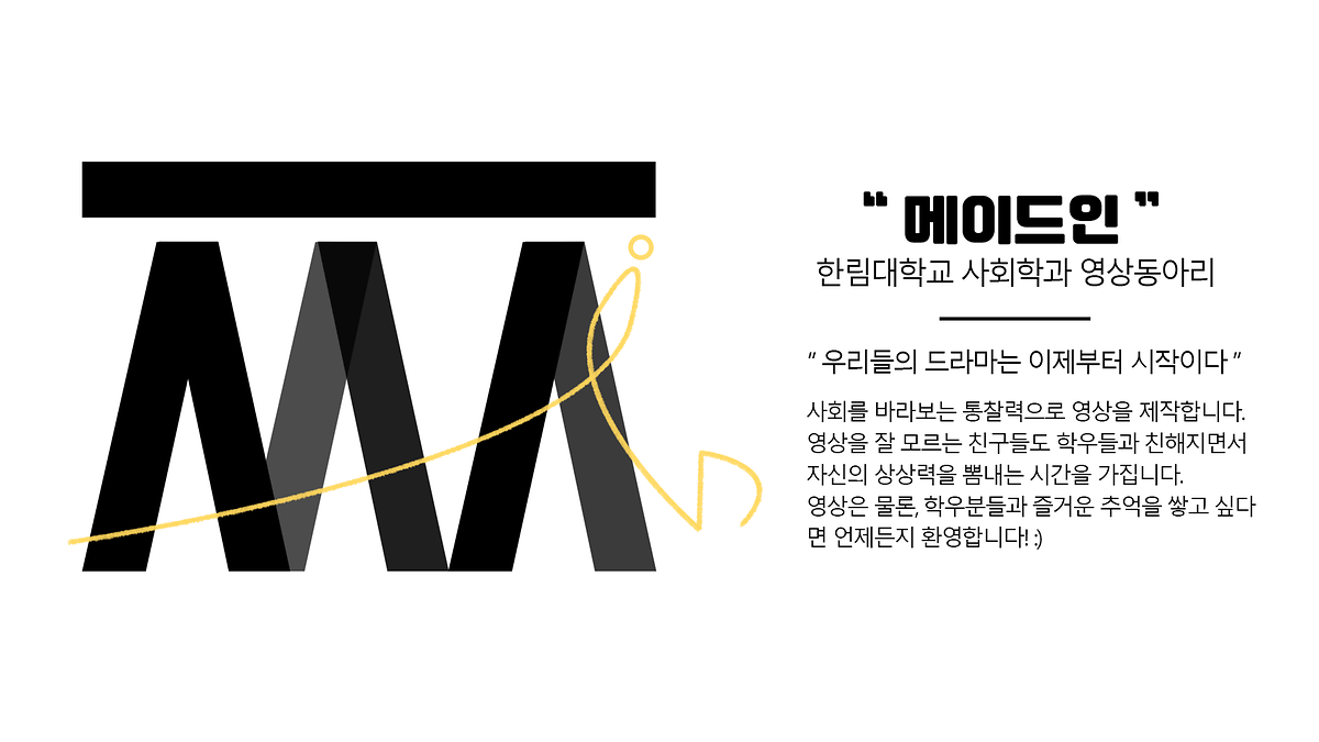 메이드인(made 人)은 "만드는 사람들"이라는 뜻을 가진 영상 제작 동아리입니다!