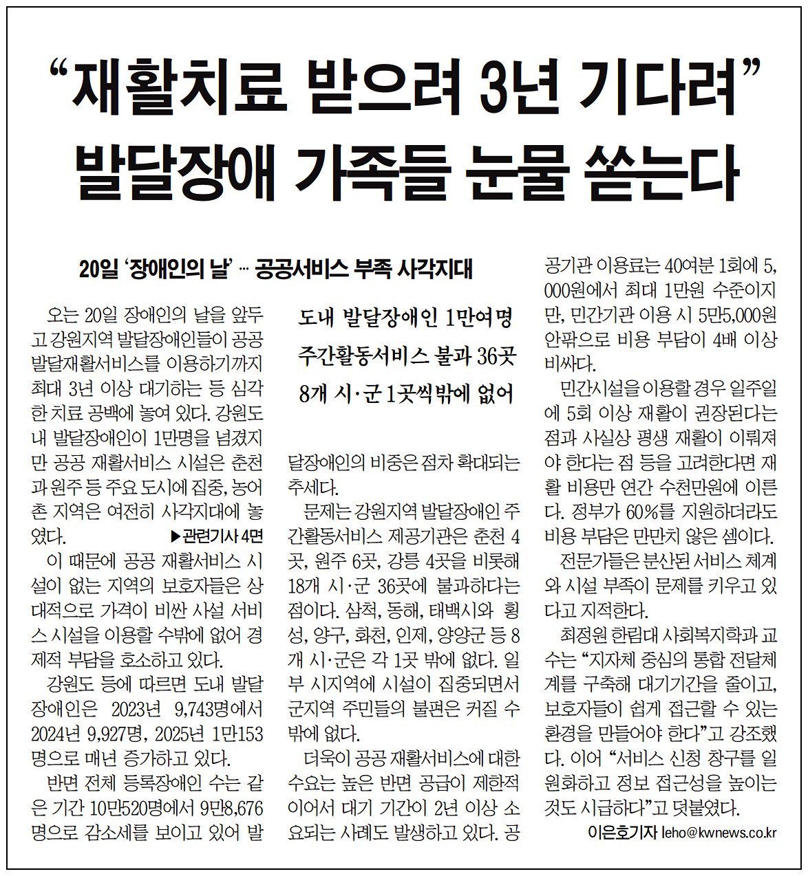 “재활치료 받으려 3년 기다려' 발달장애 가족들 눈물 쏟는다