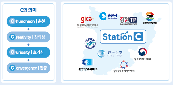 Station C 비전 창업기업 및 스타트업 육성을 위한 자생적 창업생태계 구축 Station C란 : 지역 창업브랜드로서 춘천시의 창업자원연계 및 집중을 위한 대표 창업브랜드 Station C 협력 체계