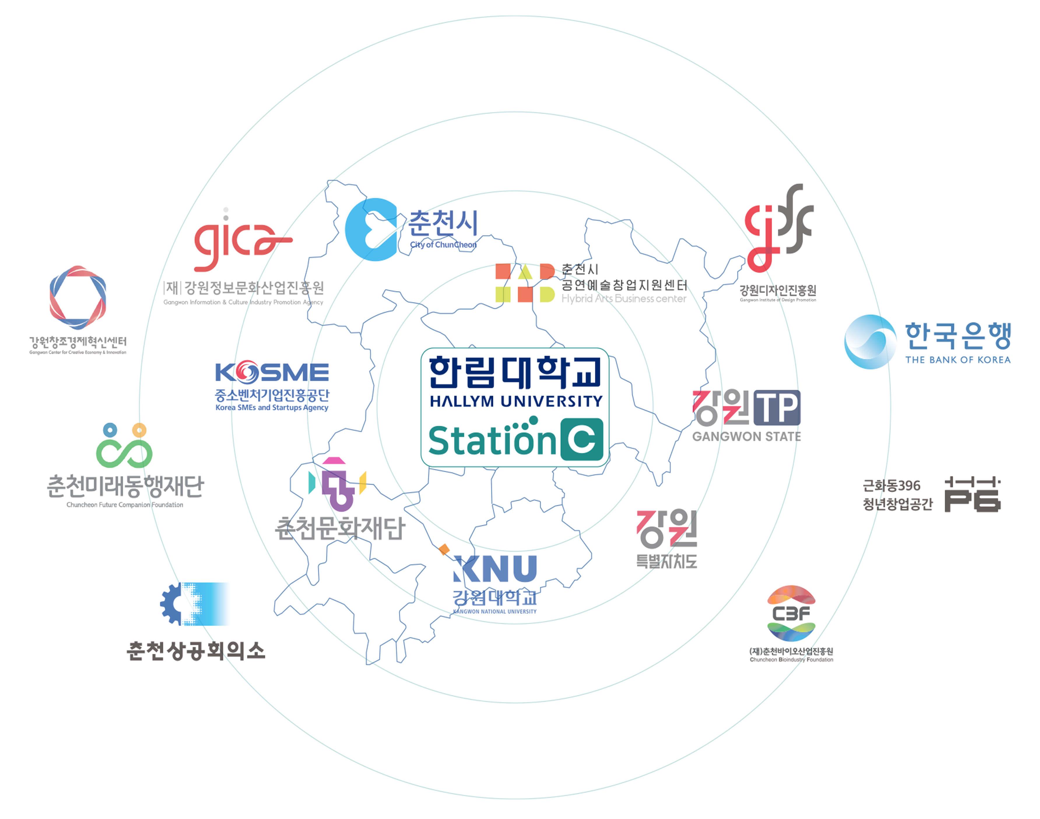 춘천시 대표 창업 브랜드 Staiton C한림대학교 스테이션C 플랫폼은 춘천을 ‘창업하기 좋은 도시’로 만드는 지역 창업생태계의 핵심 허브입니다. 지역 창업 유관기관과 대학 등 21개 참여조직, 83명의 내·외부 전문가가 함께하는 협력 거버넌스를 기반으로, 창업공간 구축부터 시장검증, 사업화, 투자 연계, 판로 개척까지 성장단계별 전주기 지원을 제공합니다. 학내외 창업공간과 특화 프로그램을 유기적으로 연결해, 청년 창업가와 유망 기업이 춘천에 안정적으로 정착하고 성장할 수 있도록 돕는 실전형 창업 플랫폼입니다.