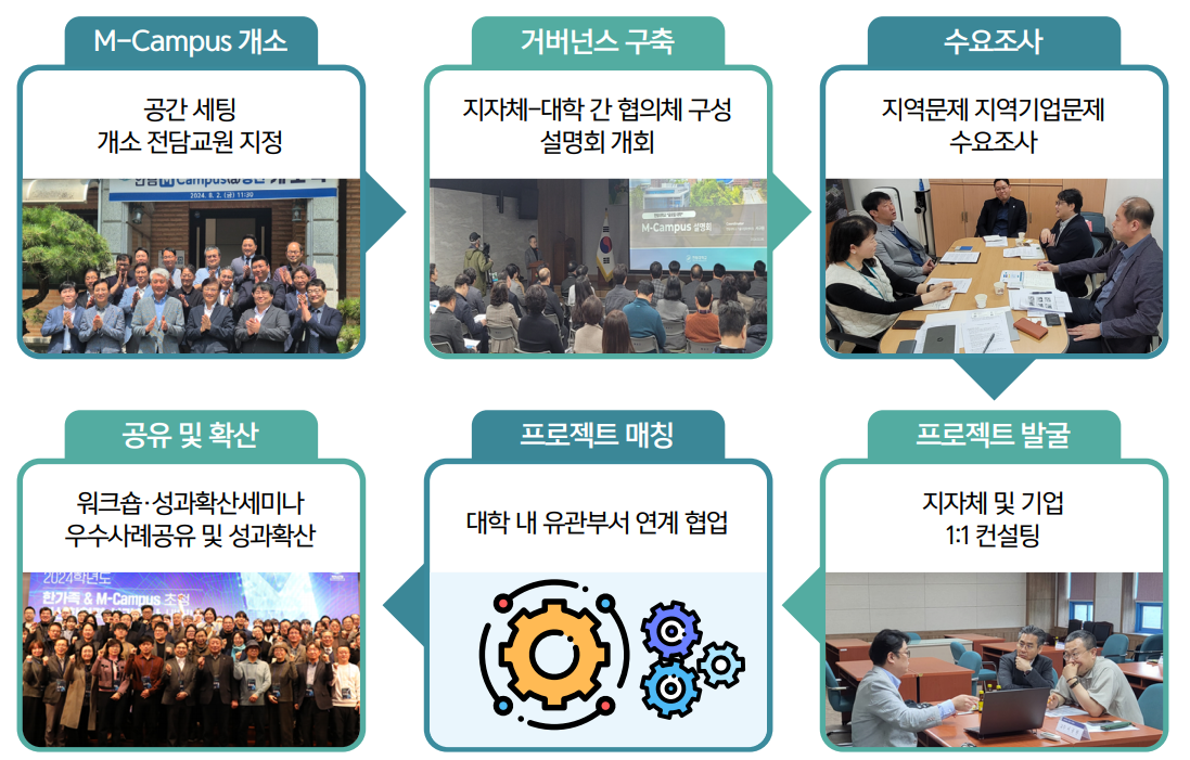 - M-Campus를 지산학 협력 거점으로 활용하여 지자체와 기업이 제시한 문제를 교수와 학생이 함께 해결하는 '찾아가는 캠퍼스' 협업이 지역 전반으로 확산