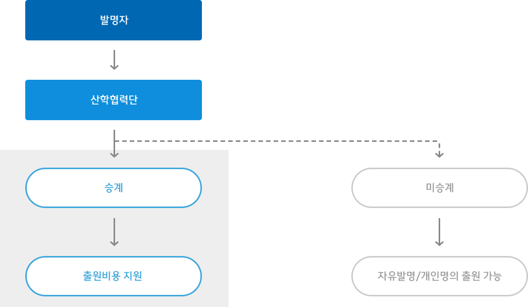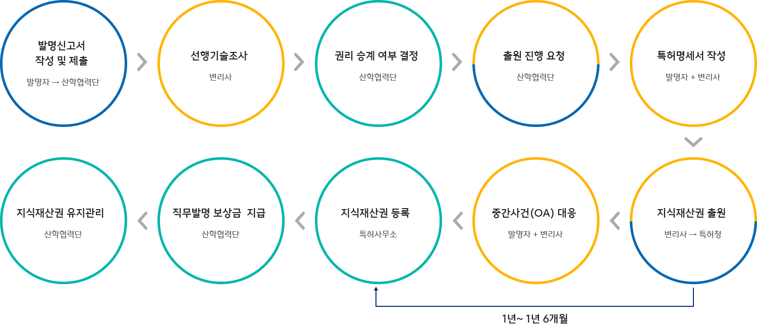 「한림대학교 지식재산권 관리 규정」 및 「지식재산권 관리 지침」에 의거하여 아래와 같이 출원 관리를 진행하며, 승계 결정시에는 규정에 따라 비용을 지원